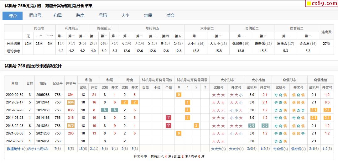 051期福彩3D试机号756对应开奖号的组选分析结果-千禧排列三开机号码_3d开机号千禧试机号_今天3D开机号试机号关注码对应码_24232期3d字谜总汇