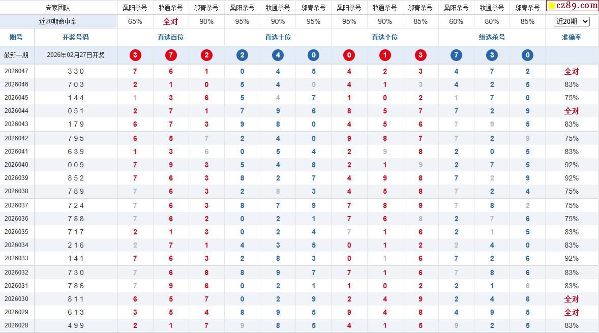 26年048期彩宝贝专家体彩P3杀号定码图表